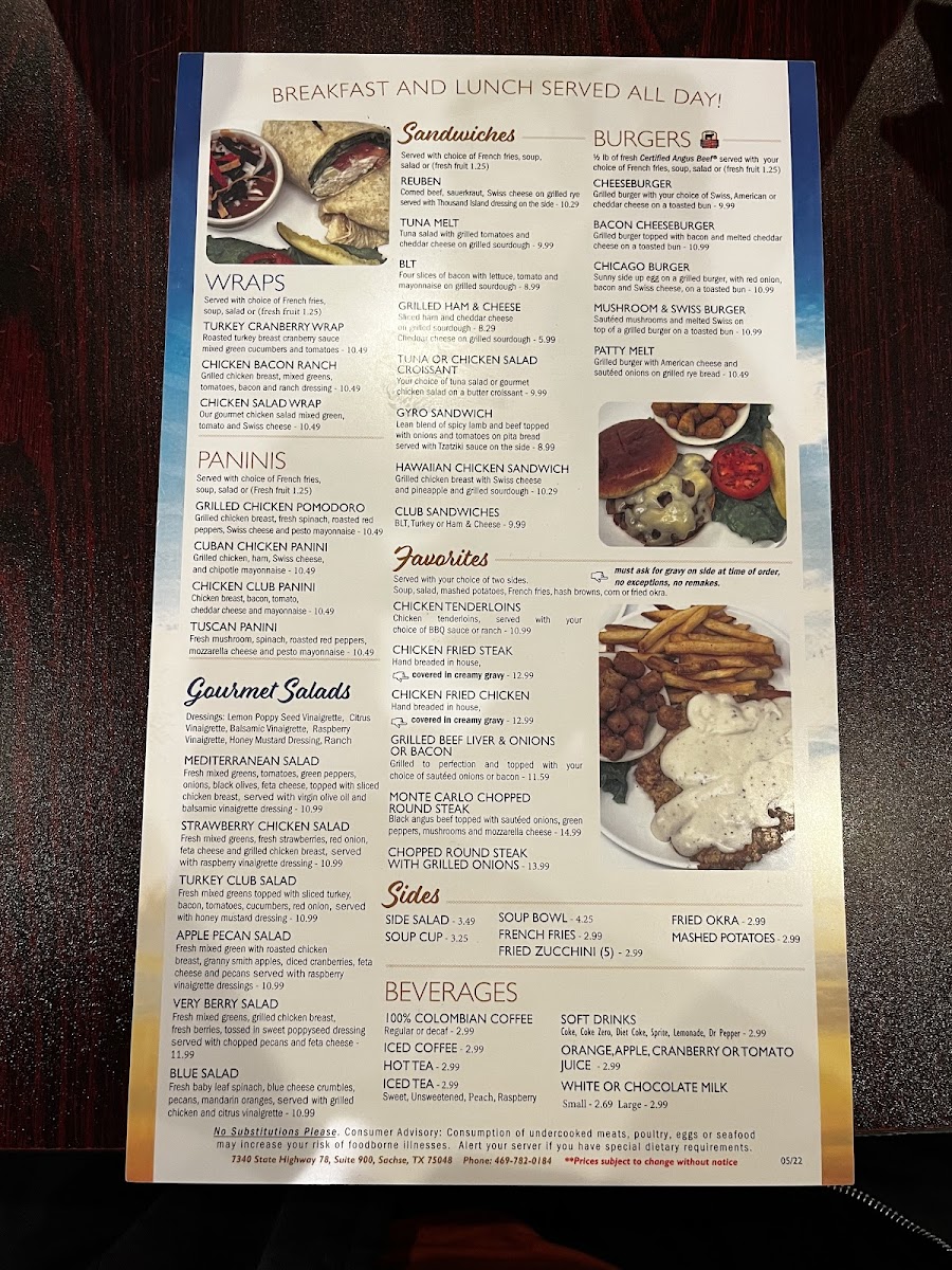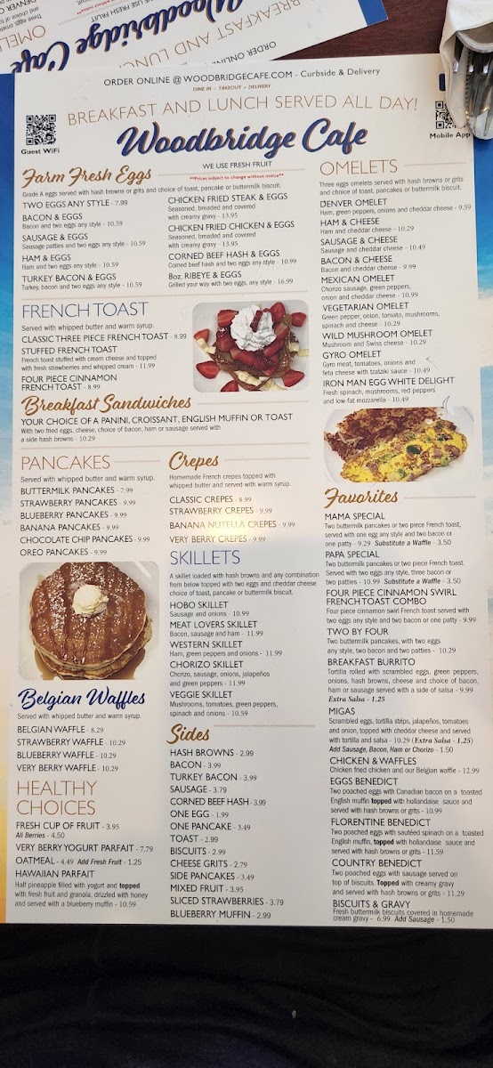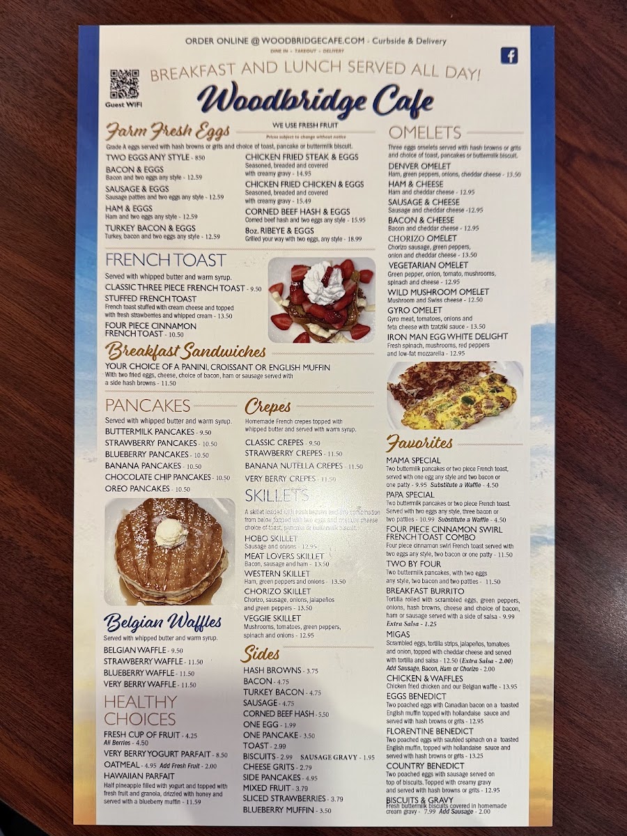 Large Belgian waffle made with fresh blueberries. Includes a side of whipped butter and warm syrup.